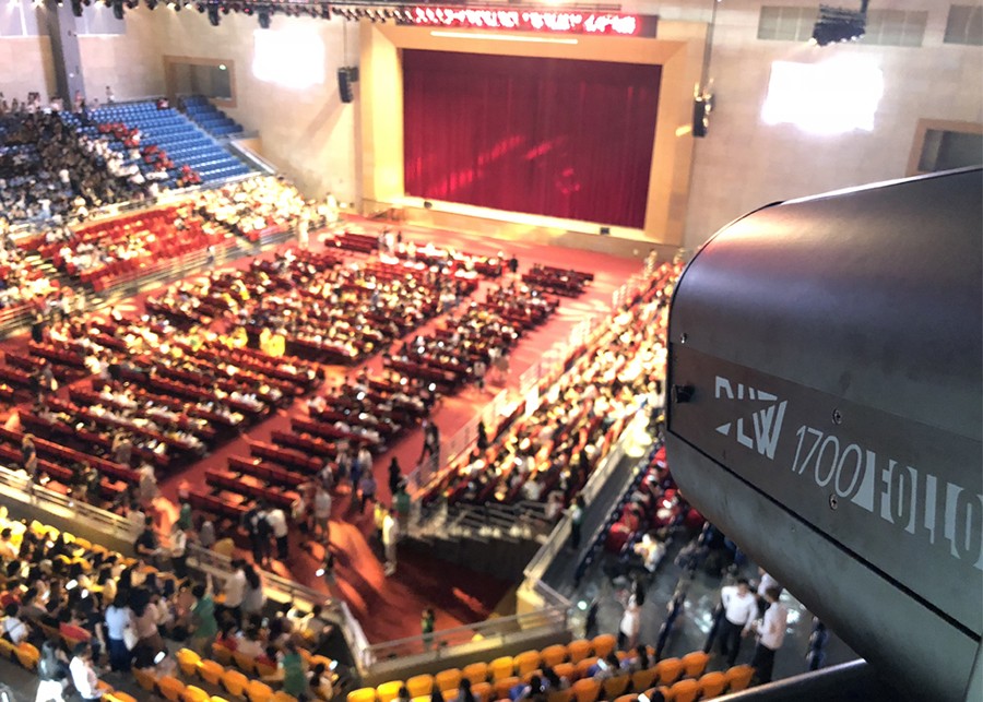 中山大學新華學院東莞校區(qū)體育館舞臺燈光系統(tǒng)由銳聲旗下代理品牌產(chǎn)品V-light和筑夢DLW系列燈具打造。